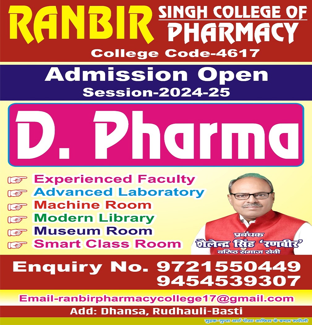 We have Pharmacy colleges typically have academic buildings housing classrooms, lecture halls, and faculty offices where students attend lectures, seminars, and workshops related to pharmacy education.Our College often have specialized laboratories for pharmaceutical sciences, including chemistry labs for drug synthesis, pharmacology labs for studying drug effects, and compounding labs for preparing medications. A Ranbir Singh college of Pharmacy campus typically has a pharmacy-specific library or a section within the main library dedicated to pharmaceutical literature, textbooks, journals, and research resources.